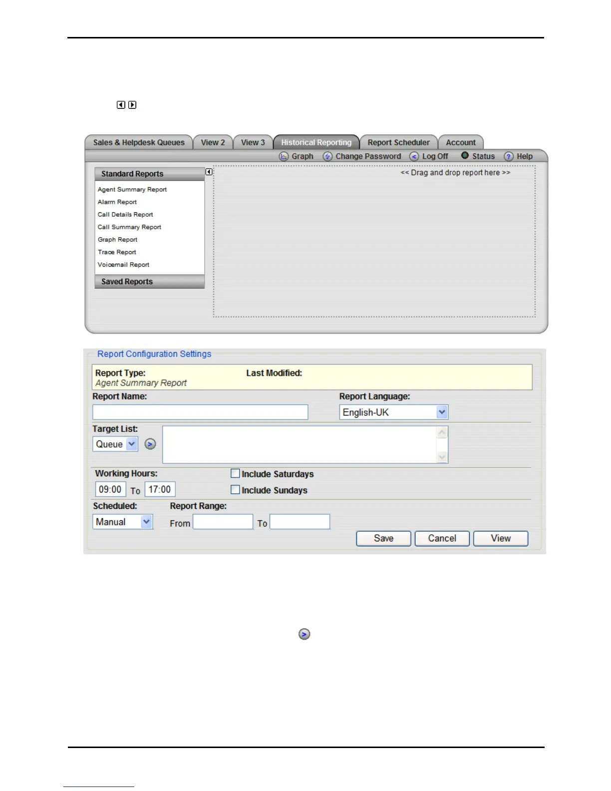 · The / icons can be used to hide/show the list of standard and saved reports.