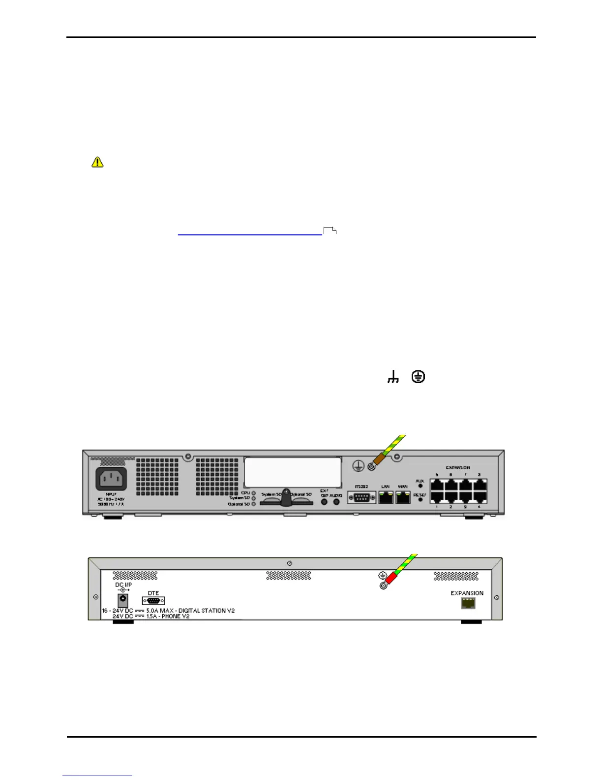 The ground point on IP Office control units and expansion modules are marked with a or symbol. Ground