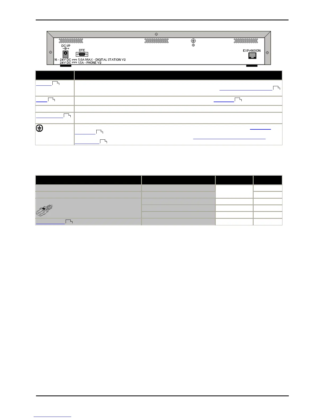 DC power input port. Used for connection of the power lead from an Avaya earthed 60W external