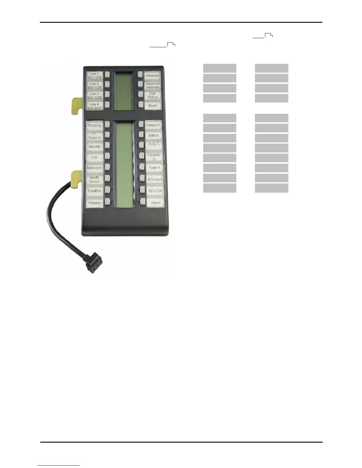 This type of button module can be used with the T7316E phones to provide 24 additional programmable buttons. For