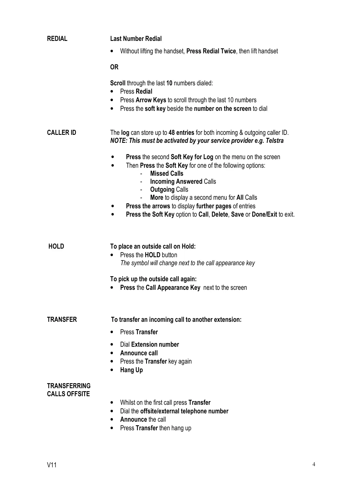 CALLER ID The log can store up to 48 entries for both incoming & outgoing caller ID.