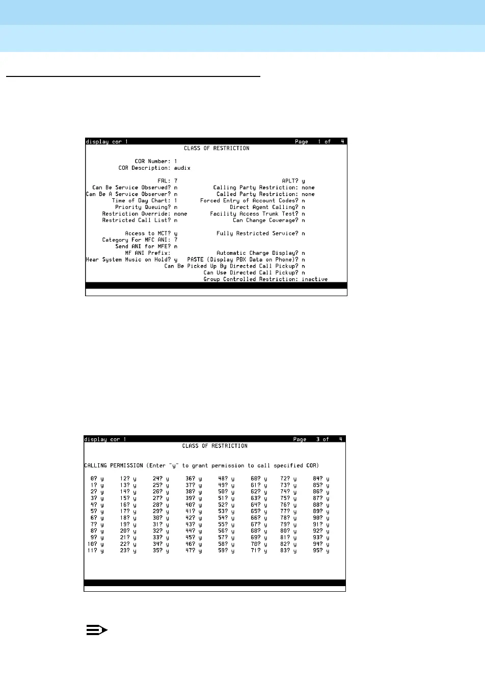 1. At the SAT or Avaya Site Administration window, type disp cor 1, where 1