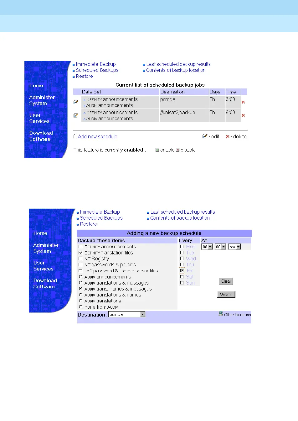 4. Select backup destination either to a LAN address or a PCMCIA Flash