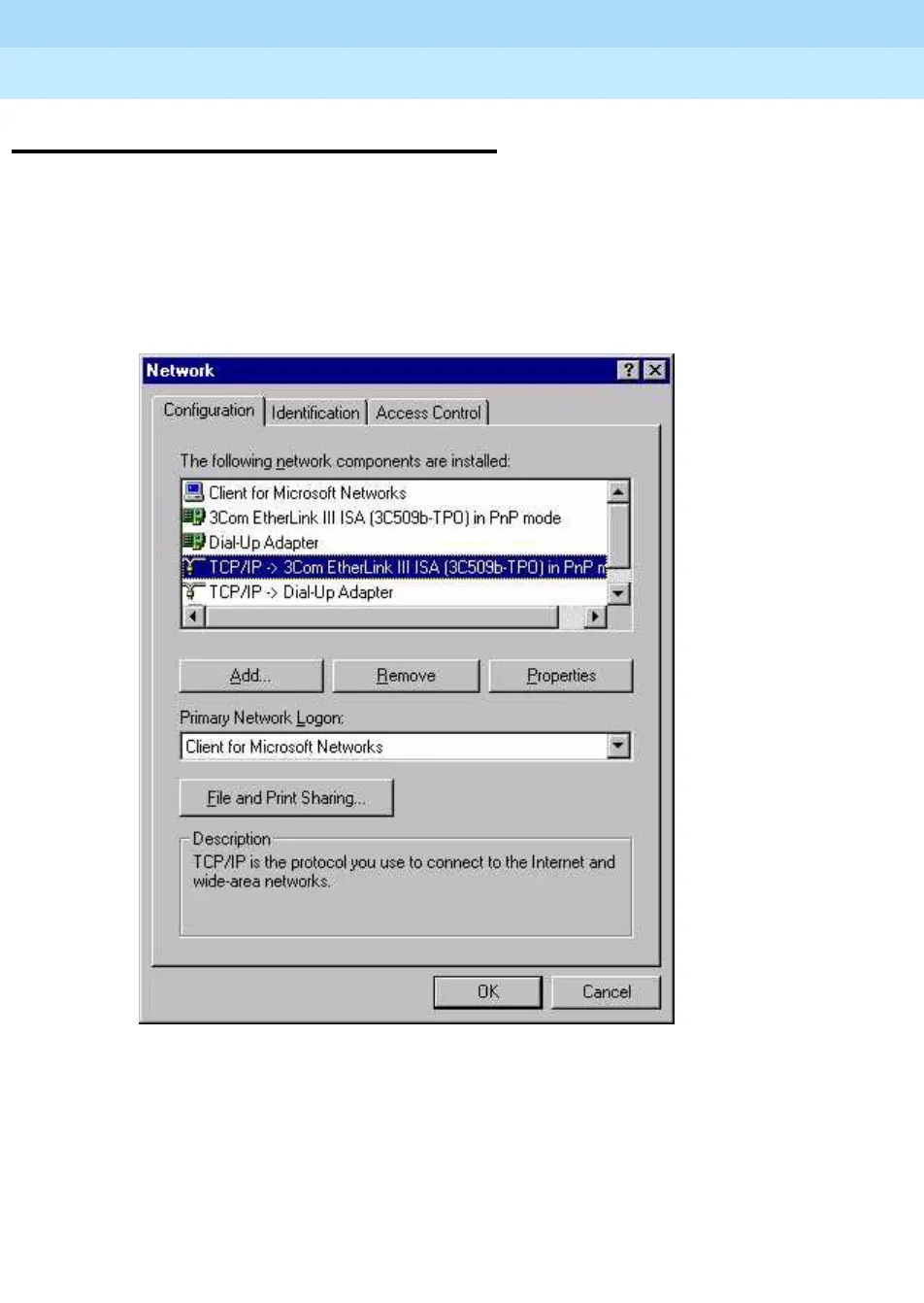 2. Left click on TCP/IP Ethernet NIC card in Configuration Tab. The services