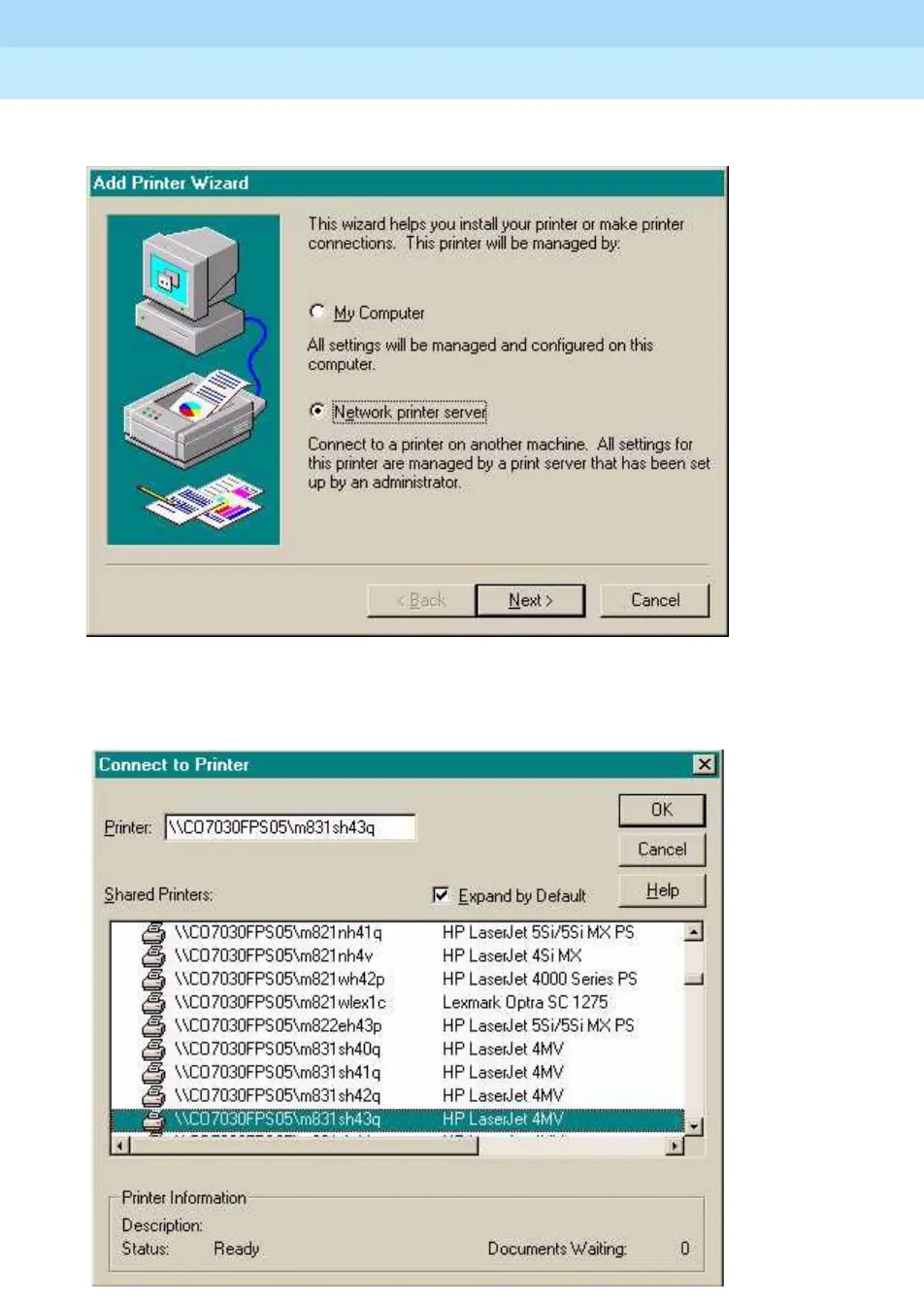 14. Choose Network printer server and click Next.