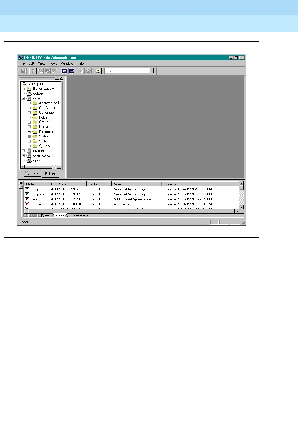 Figure 7-2. Avaya Site Administration window with tree pane and status viewer or schedule