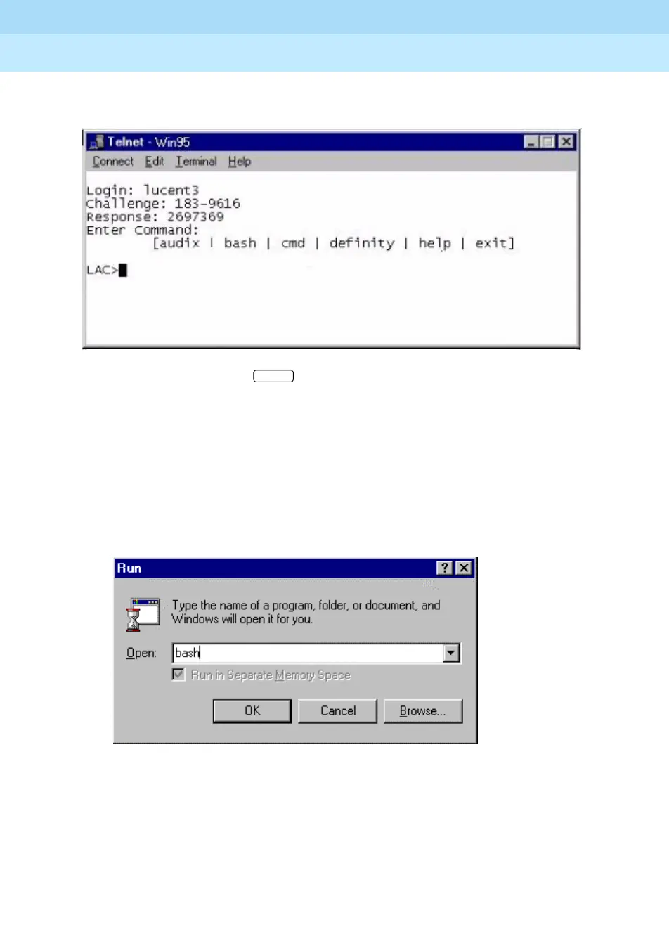 This is the bash shell procedure when using a DEFINITY ONE or IP600 desktop.