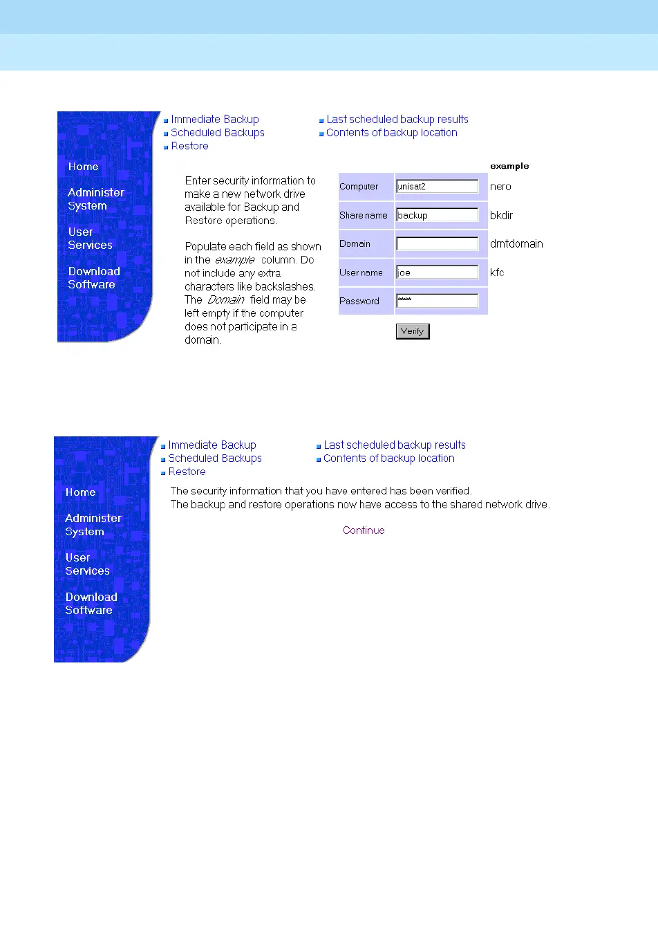 C-19Backup via the Web interface