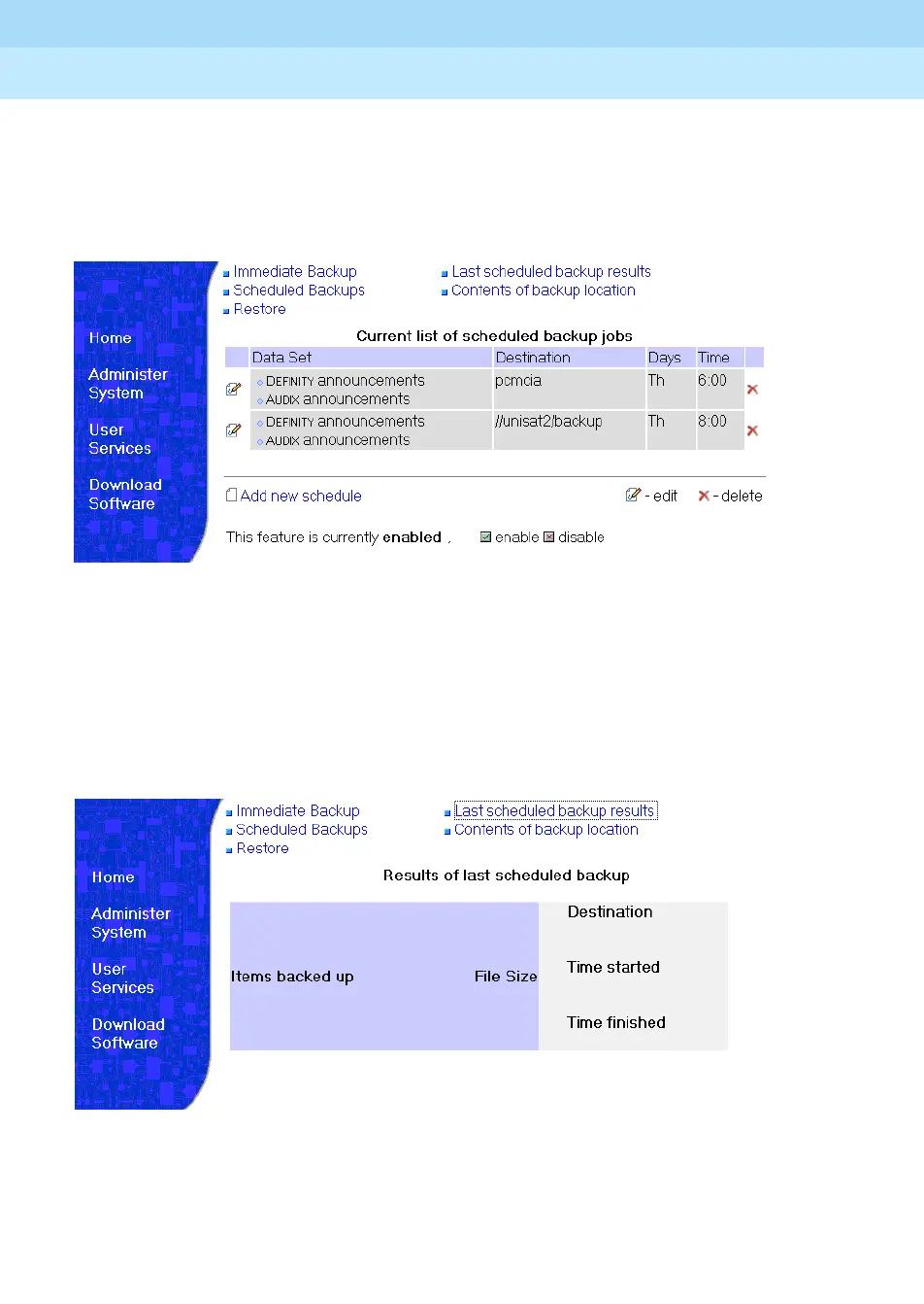 From this screen, you can add, edit, or delete scheduled backups. For