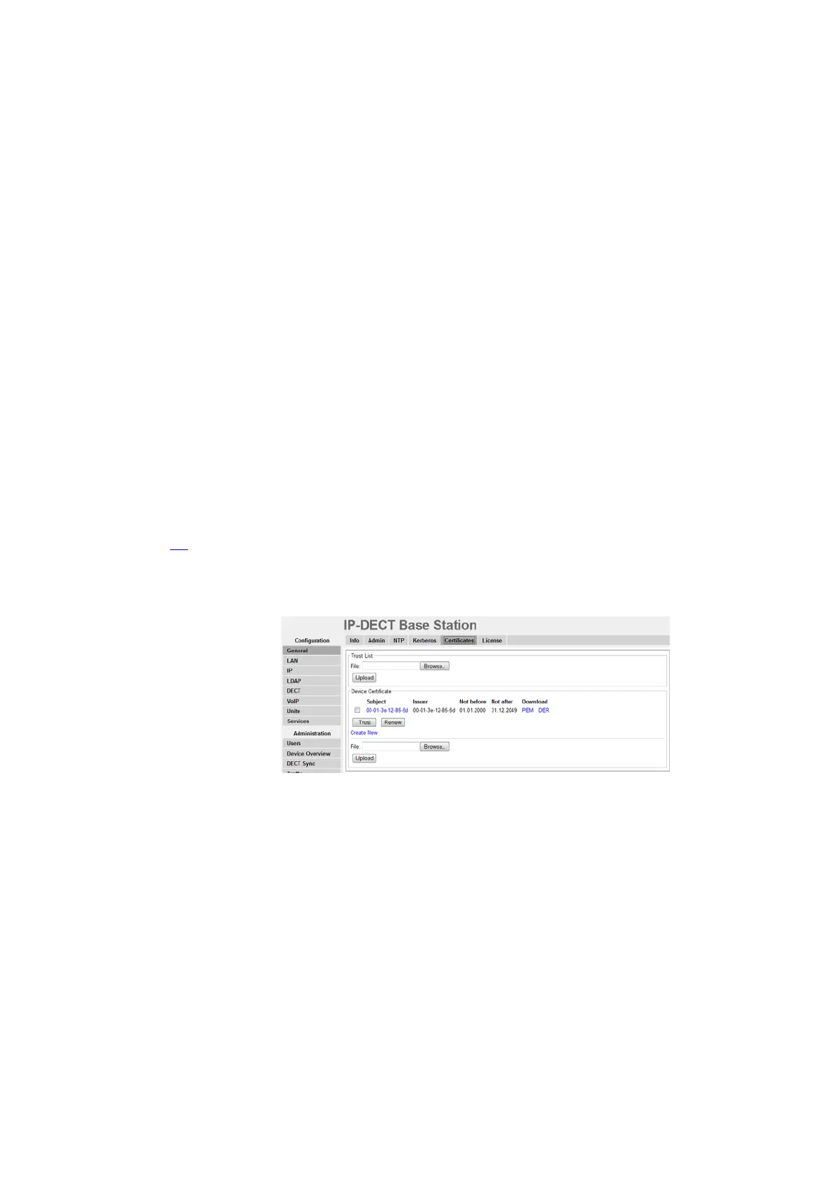 The Certificates tab is part of IP Security in IP-DECT. For more information on IP Security, see