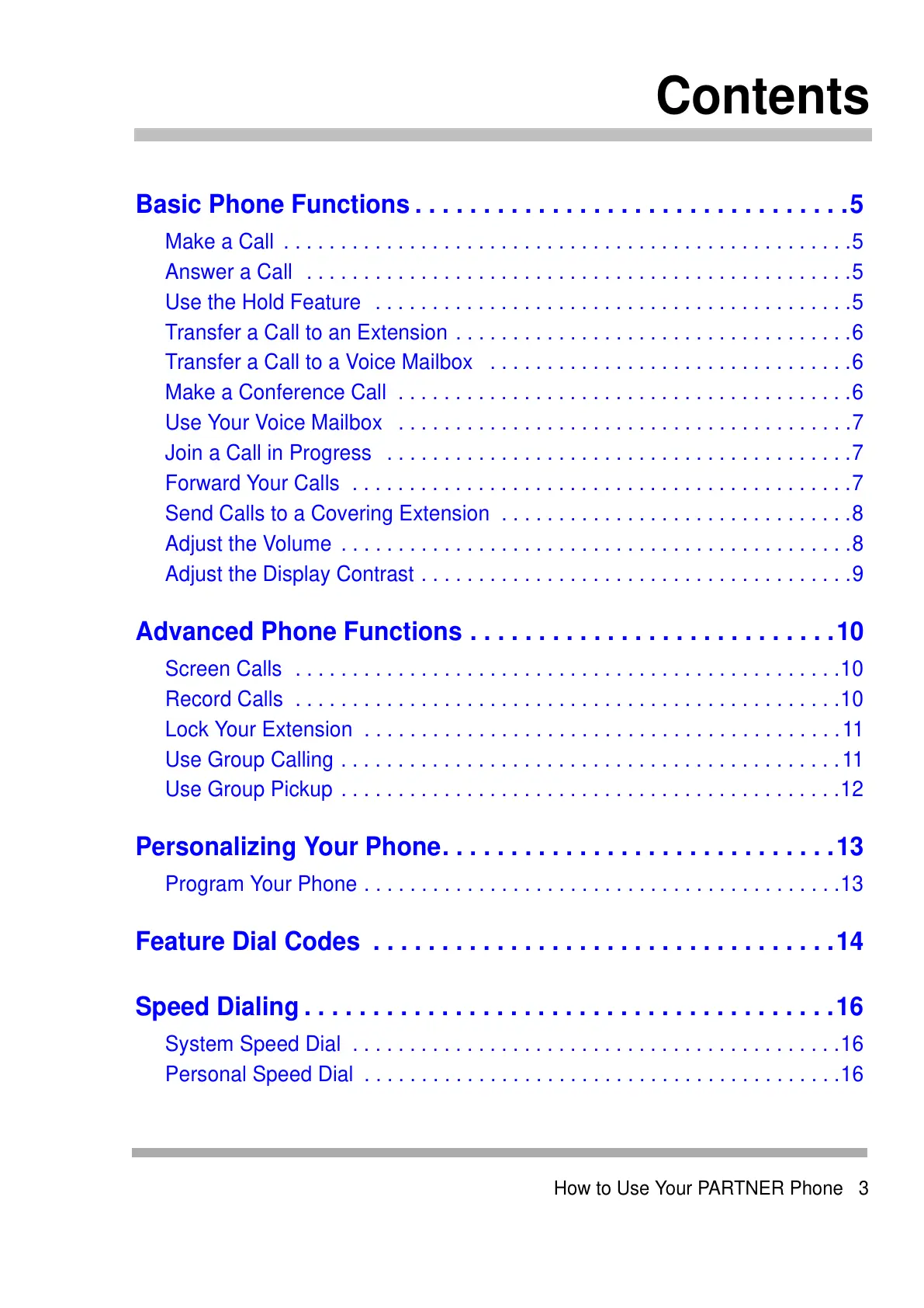 Personal Speed Dial . . . . . . . . . . . . . . . . . . . . . . . . . . . . . . . . . . . . . . . . . .16