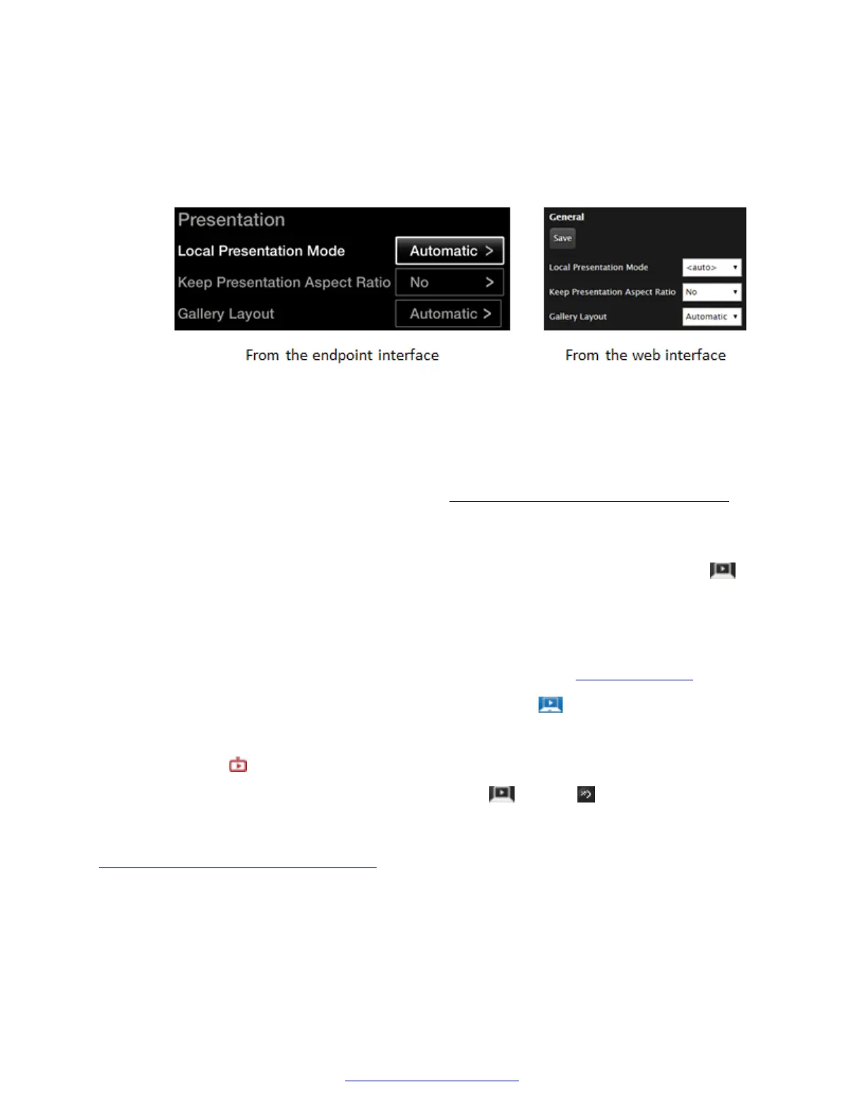 Set Local Presentation Mode to Automatic (endpoint’s interface) or <auto> (web interface).