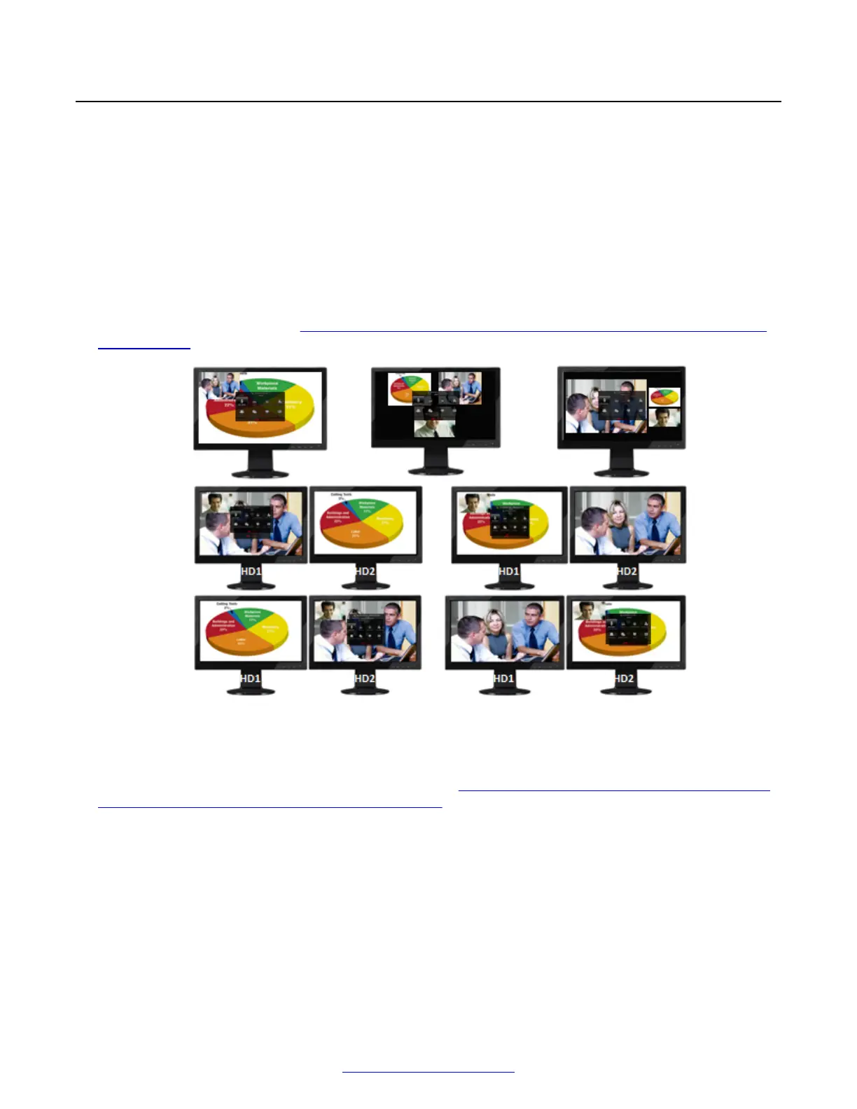 Figure 58: Examples of video layouts with three streams on single or dual monitors