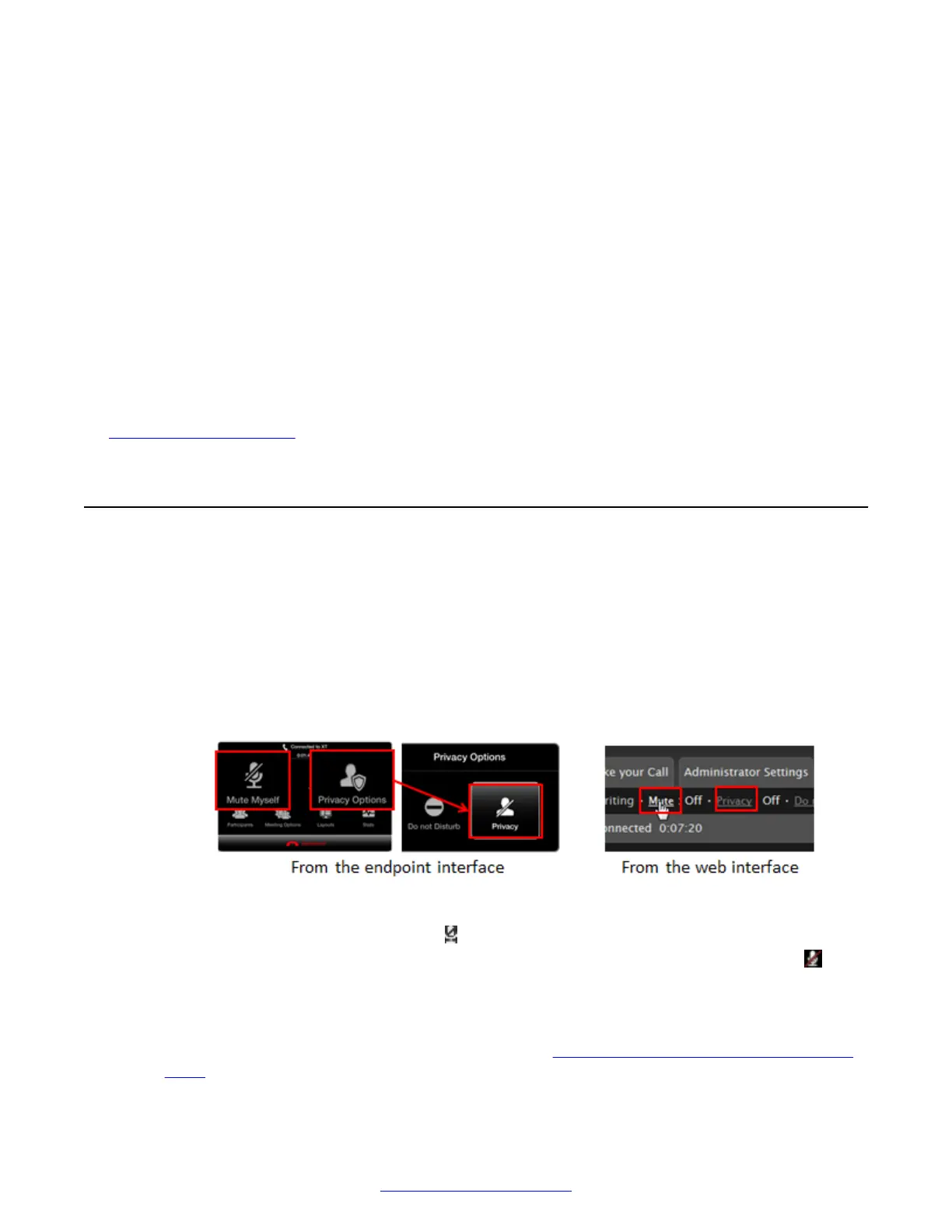 1. To mute your own audio, access the call menu. From the XT Series web interface, select