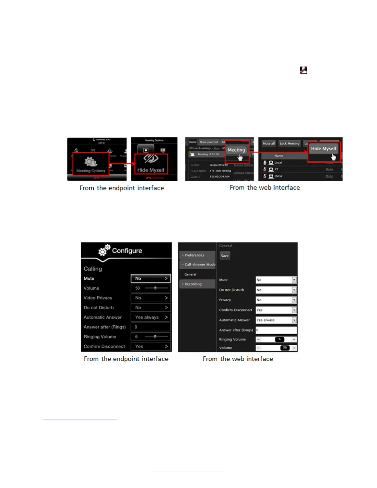 interface, select Meeting > Hide Myself. From the endpoint's in-call menu, select Meeting