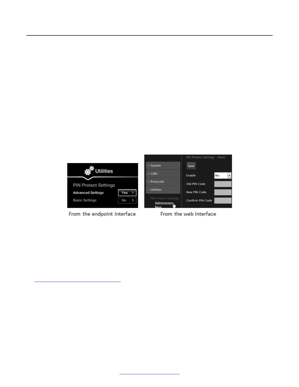 Utilities > PIN Protect Settings. From the endpoint's main menu, select Configure >