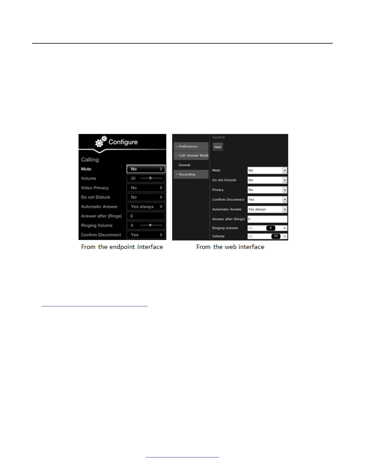 Answer Mode > General. From the endpoint's main menu, select Configure > Calling.