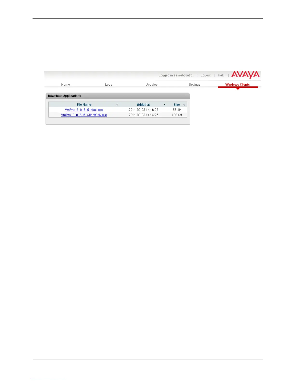 voicemail server. The software package for installing the client can be downloaded from the Unified Communications
