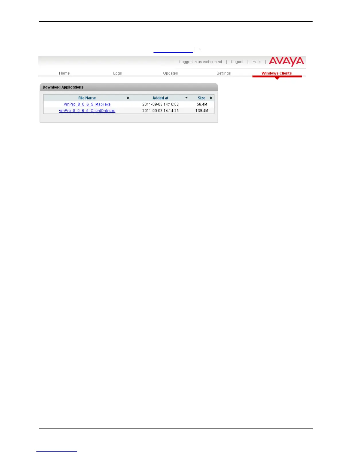 This page is used to download files for use on the local PC. For example, the Voicemail Pro client used to administer the