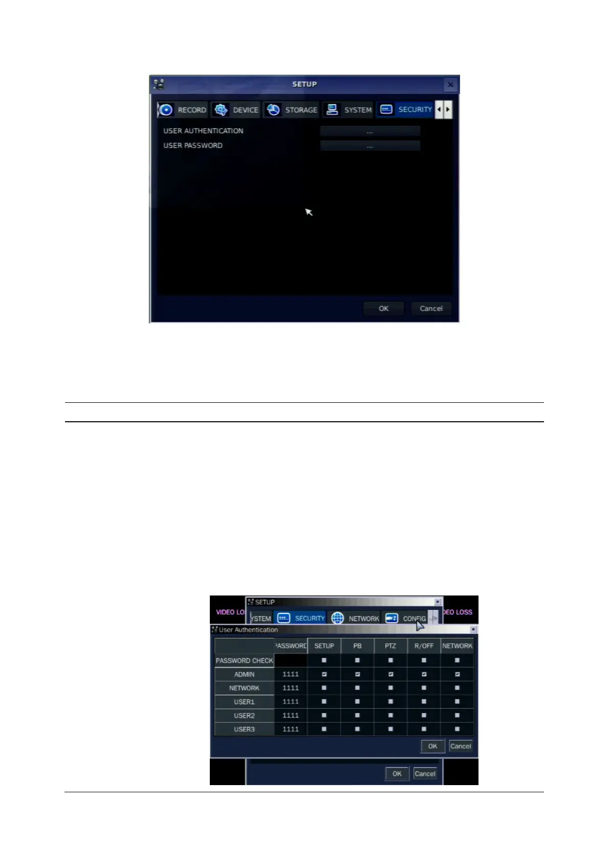Table 3.7.1. Menu Items in PASSWRORD Setup Screen