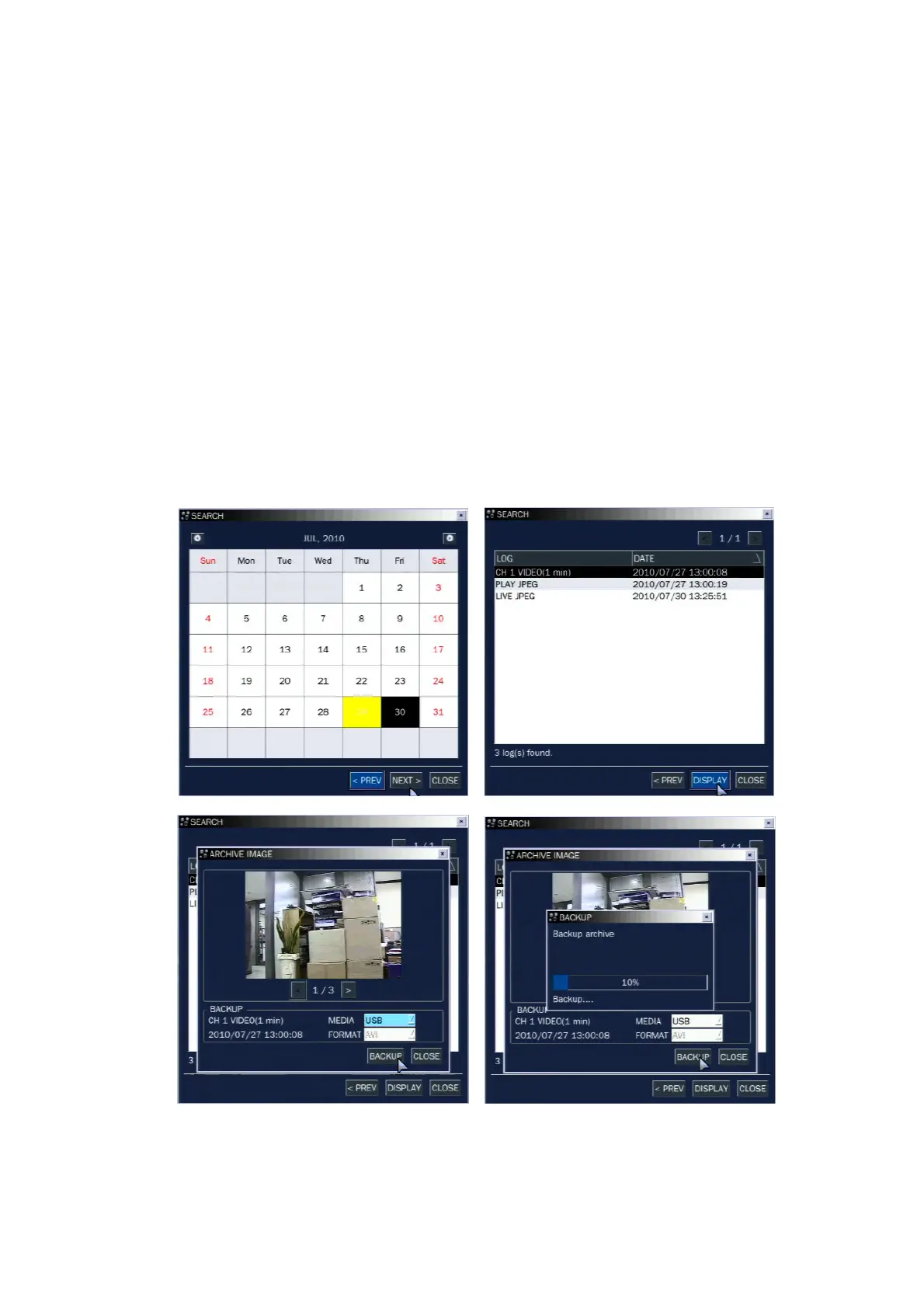 6. Press the BACKUP button to launch the archiving function in playback mode.