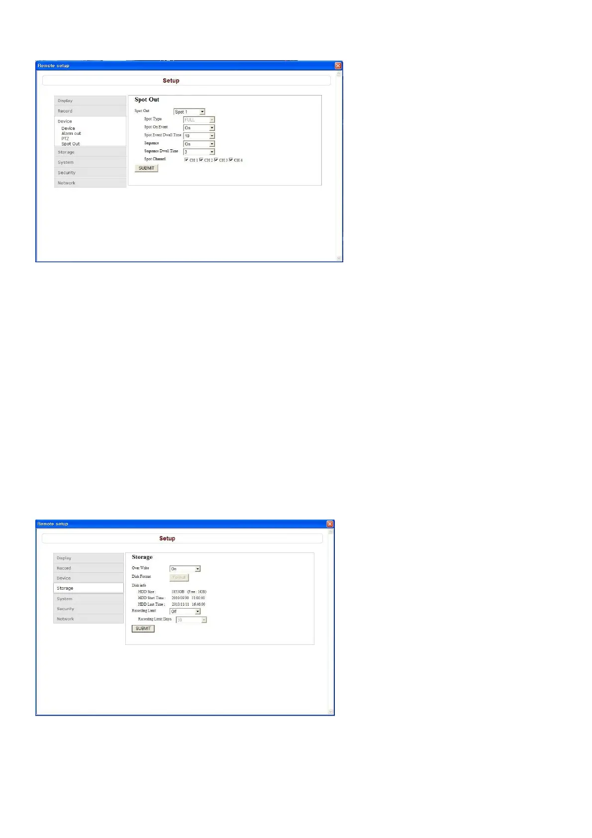 Select Storage to configure continued recording settings by overwriting the hard disk and the storage