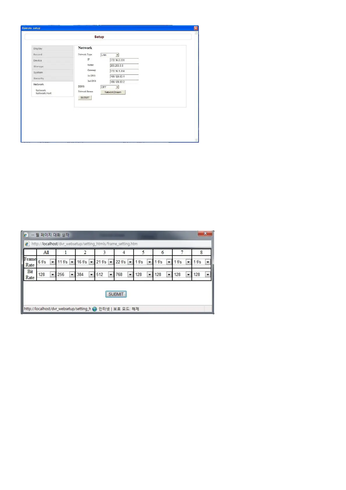 Network Stream: Set a frame rate and bit rate for a network streaming. (4ch: Total 50/60fps, 8/16ch: Total