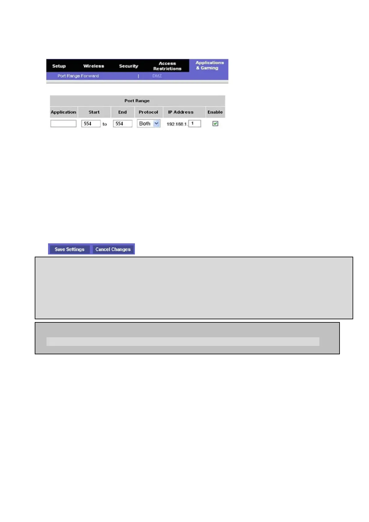 7. Select the Save settings button located on the bottom of the window. Then Port forwarding is
