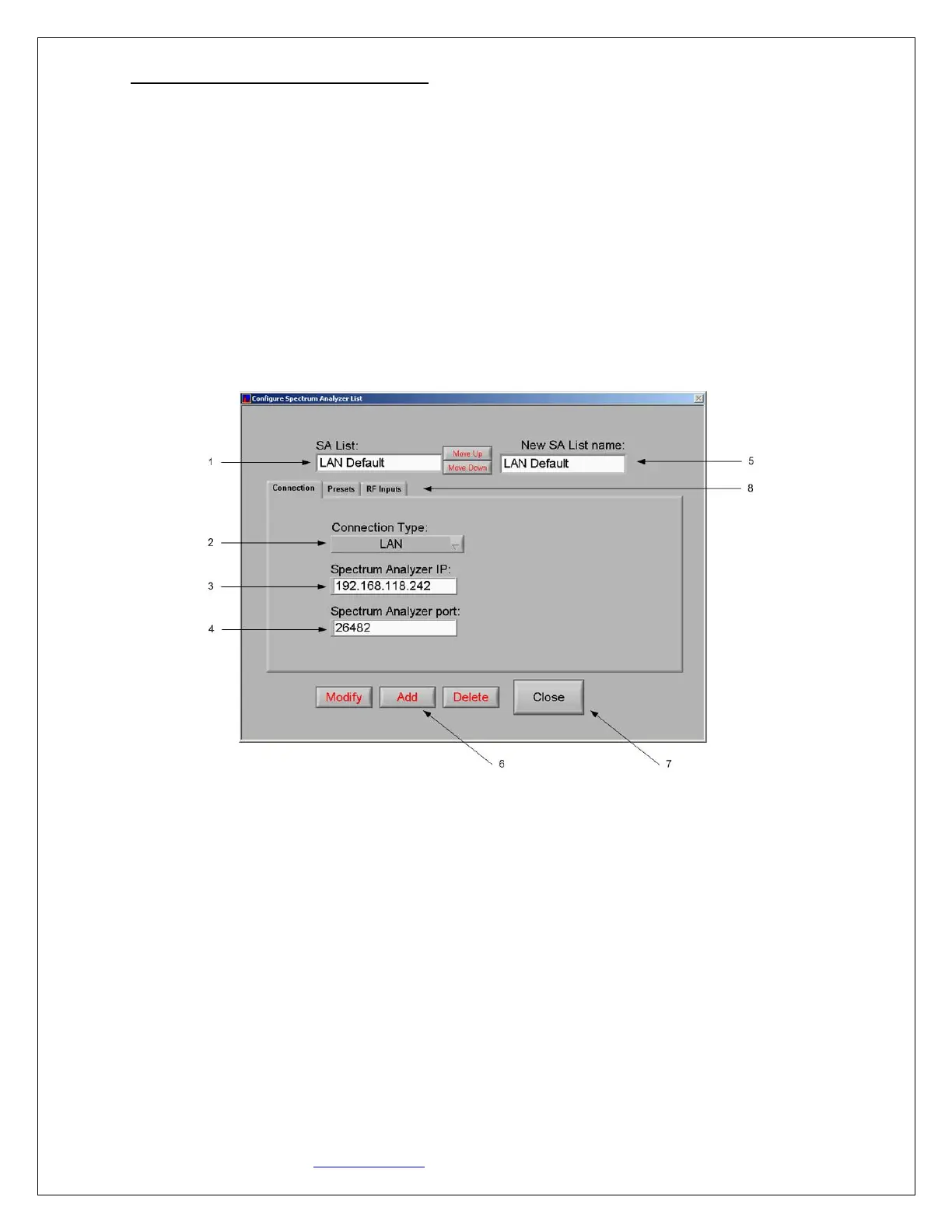 4. Enter the port for the spectrum analyzer. Shown below is the default port as shipped from the factory.