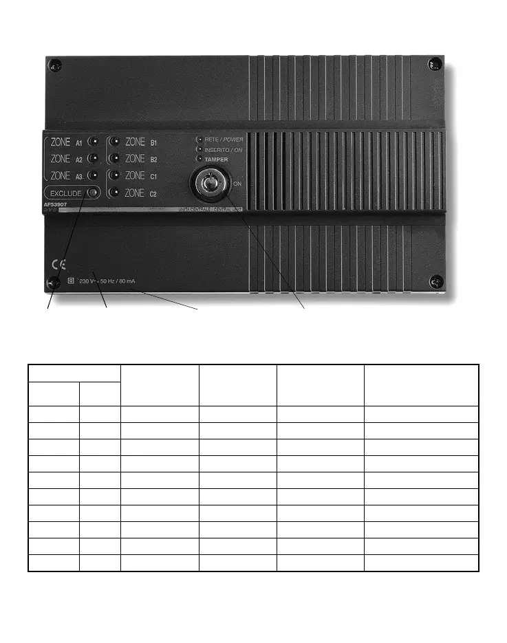 Nota: I LED di segnalazione d’allarme sono sempre spenti con centrale in ON.