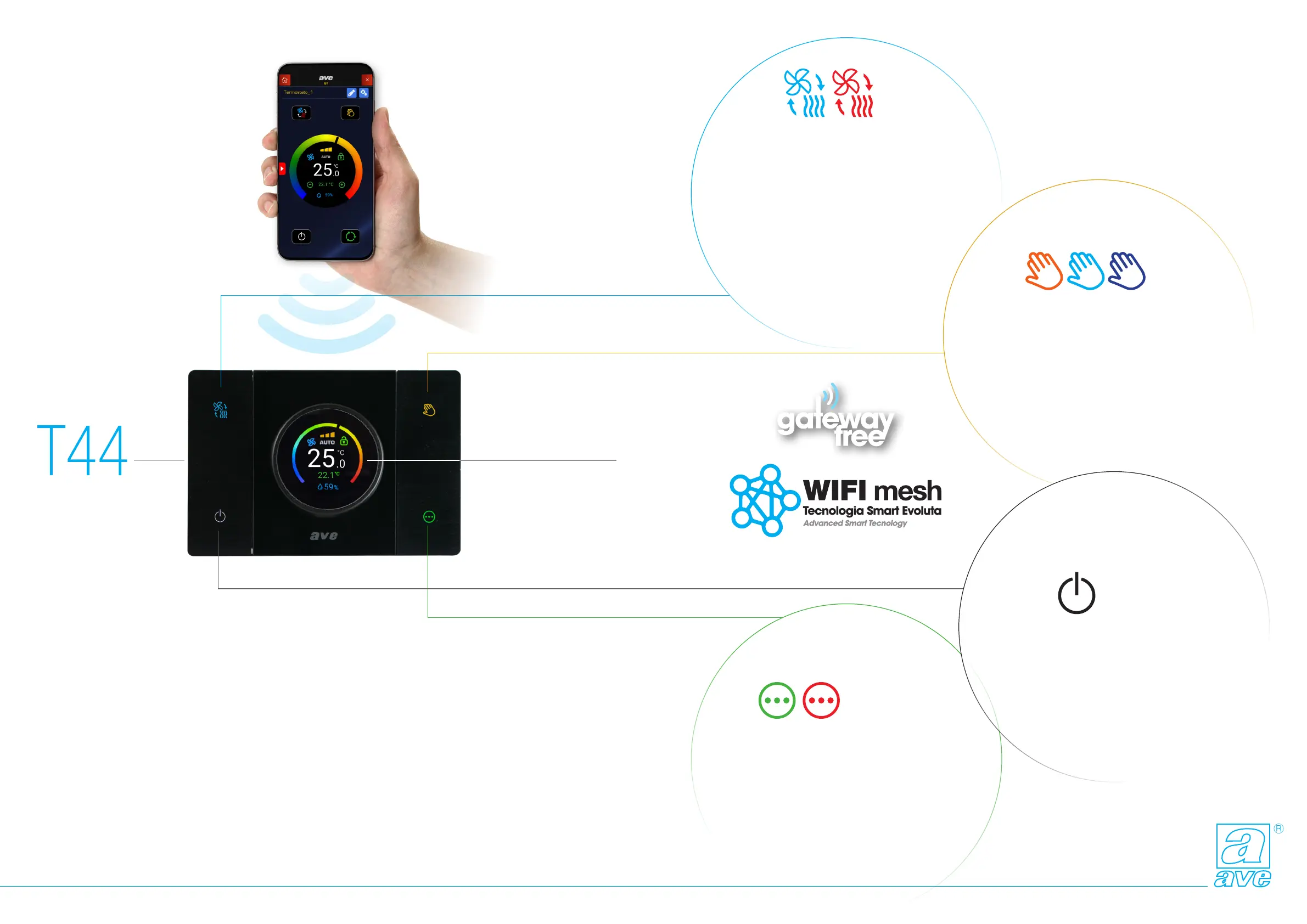 pulsante con il simbolo della mano ed il set di temperatura è