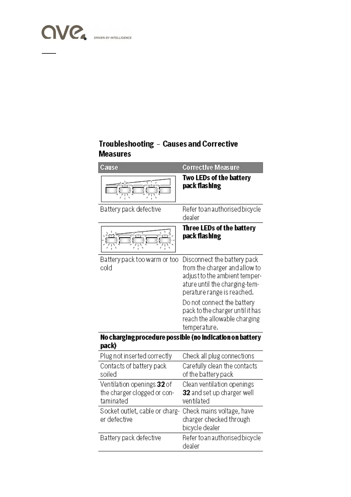 shooting list below. If a bug can not be fixed, please contact your ave. dealer or an authorized