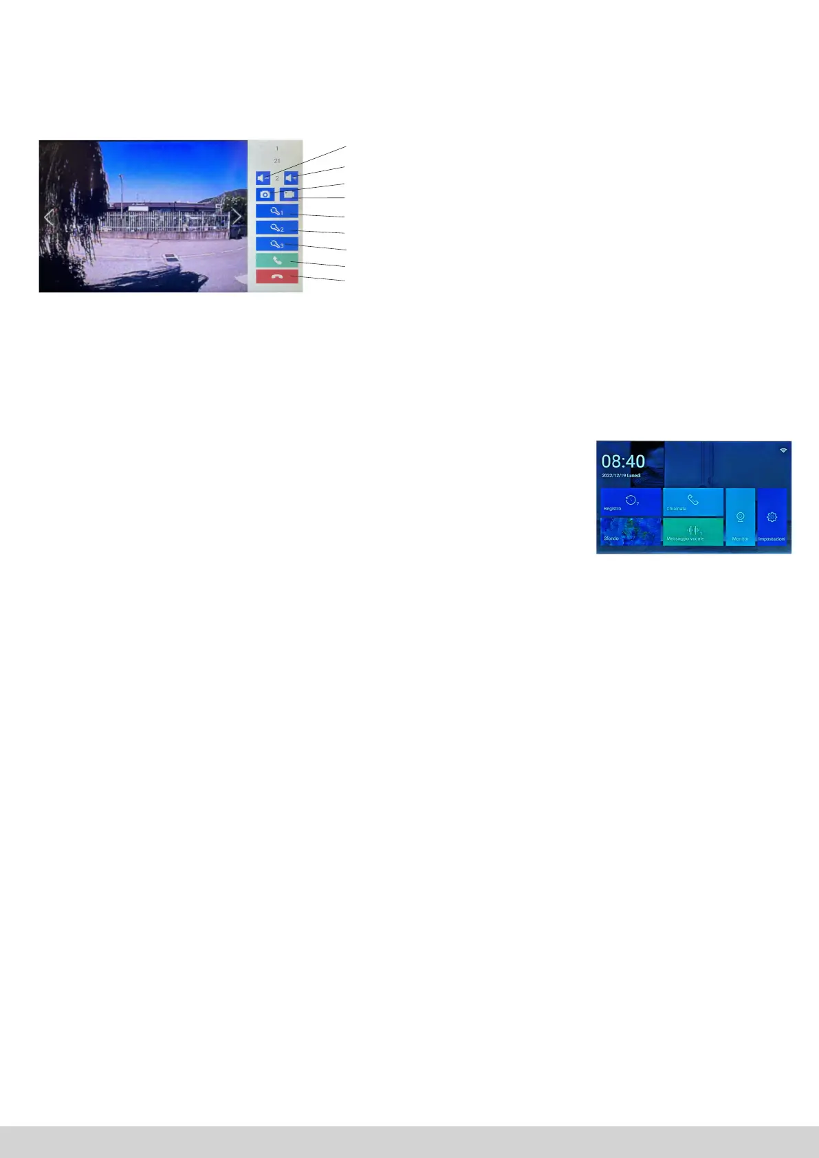 Chiamata: durante l’operazione di sorveglianza delle telecamere è possibile attivare una comunicazione verso la postazione esterna premendo il pulsante