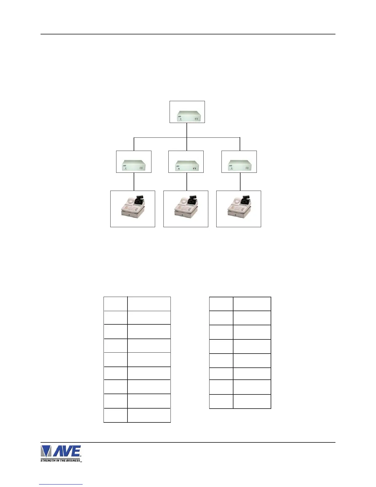 The Regcom is an interface device that allows the connection of multiple cash register terminals to a master unit