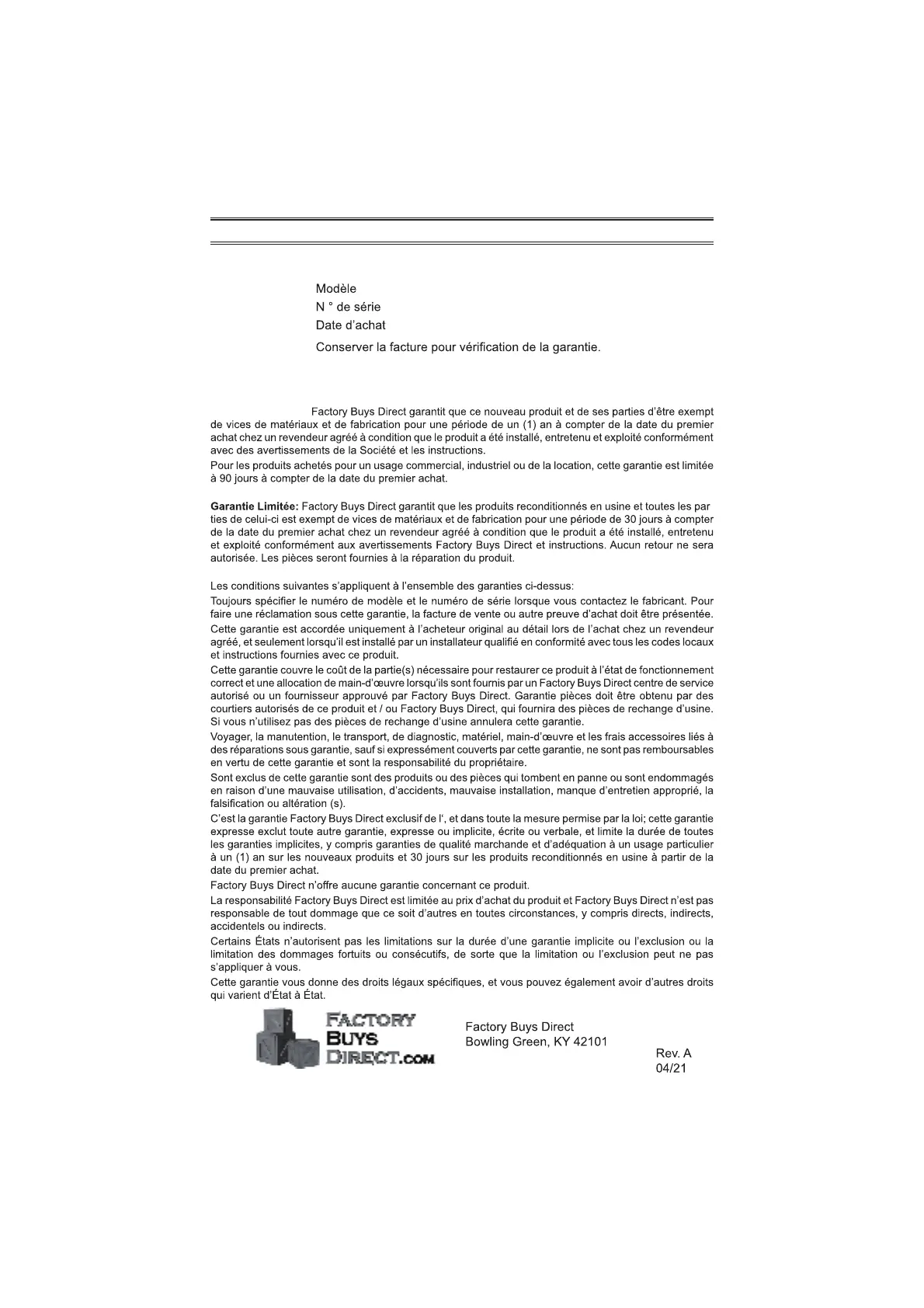 FACTORY BUYS DIRECT GARANTIES LIMITÉES