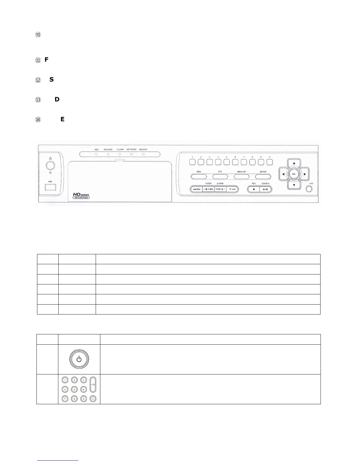 Table 2.1.3. Front panel buttons for 8 & 16ch