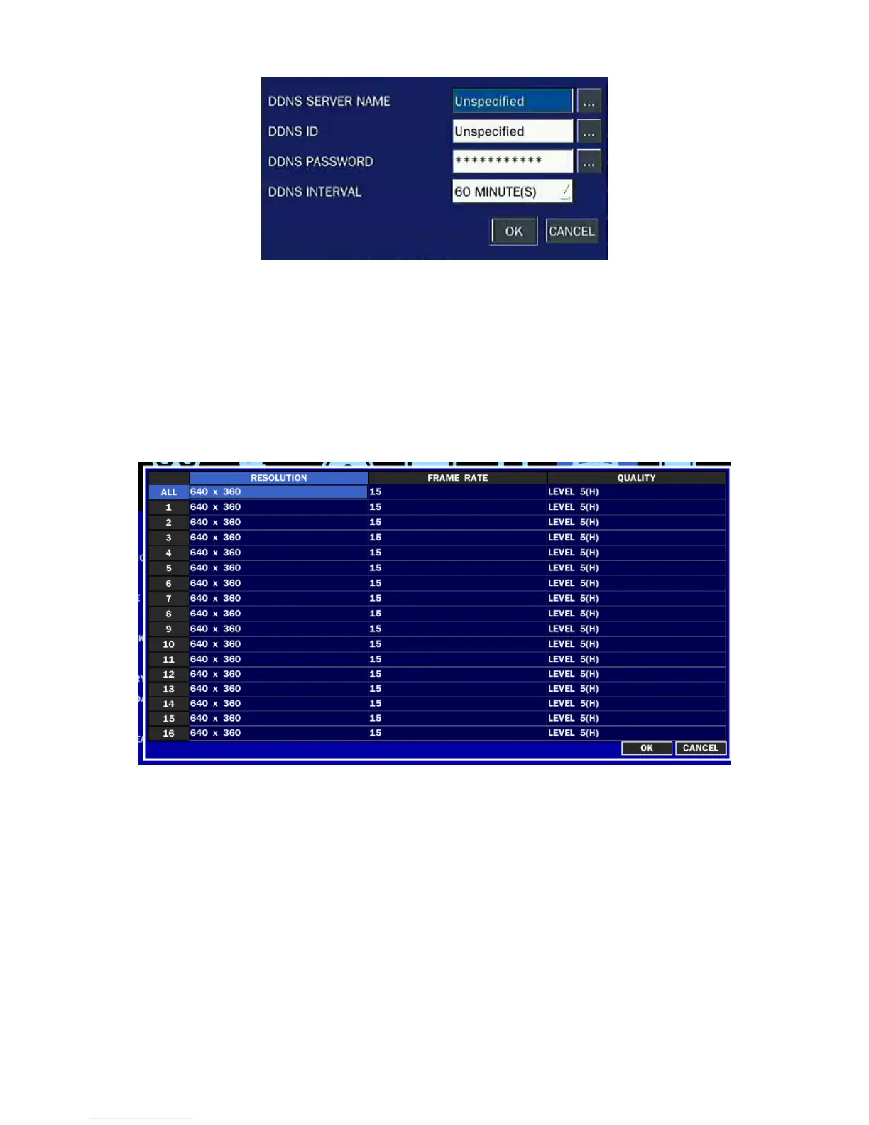 User can set the Resolution, the frame rate and the quality for a network stream classified by channel.