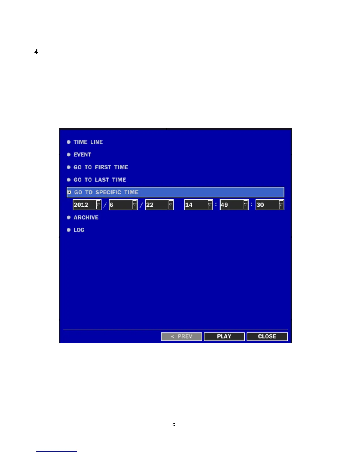 User can search for video data from a specific instance by setting the date and time in the Go To