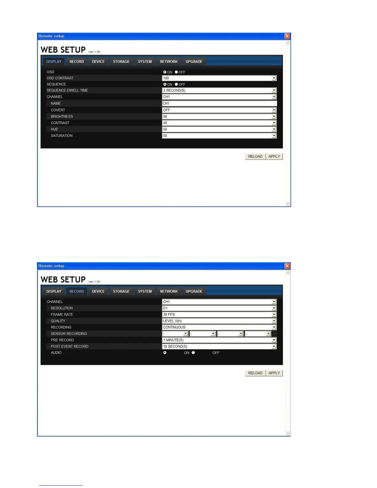 User can set the value on this remote setup page. After setting the value, please press the APPLY button.