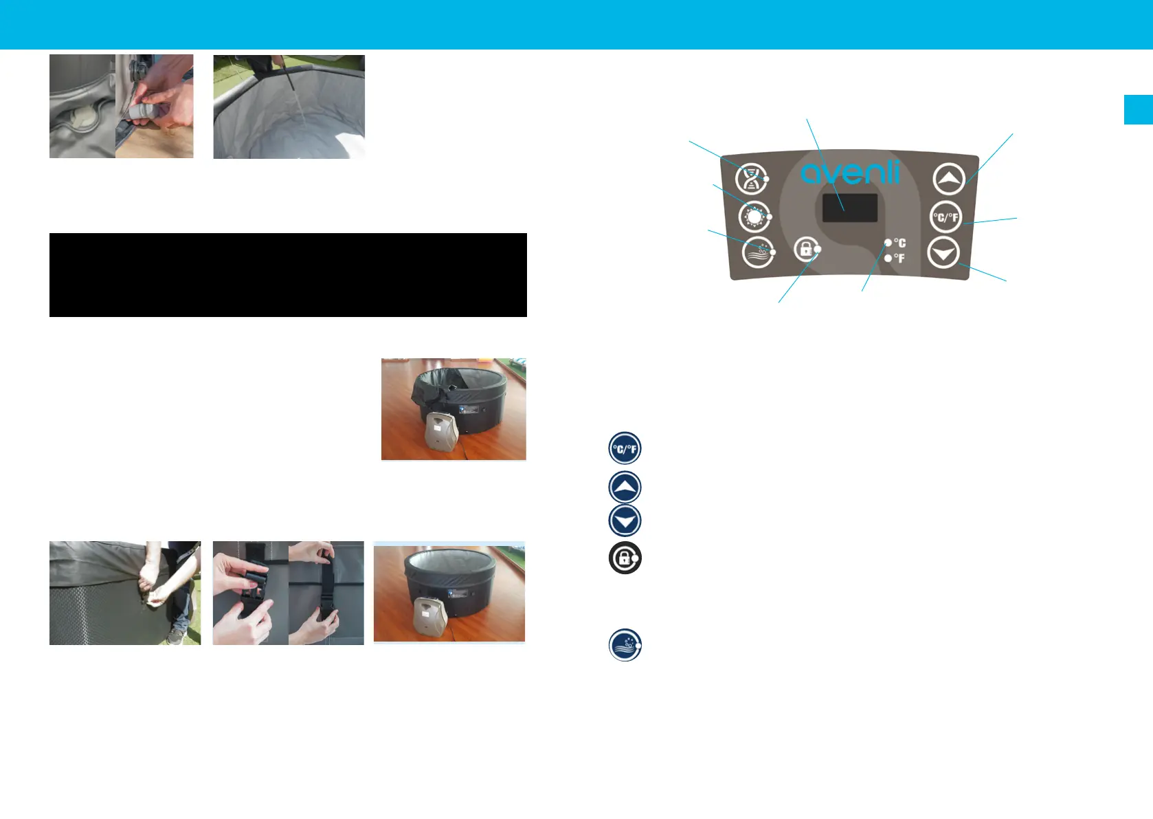 place. Commencez à remplir le spa avec de l’eau. Après environ 10cm d’eau, arrêtez de remplir