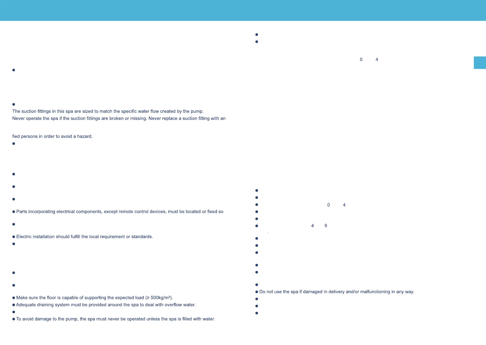 - The use of alcohol, drugs or medication before or during spa use may lead to unconsciousness with the
