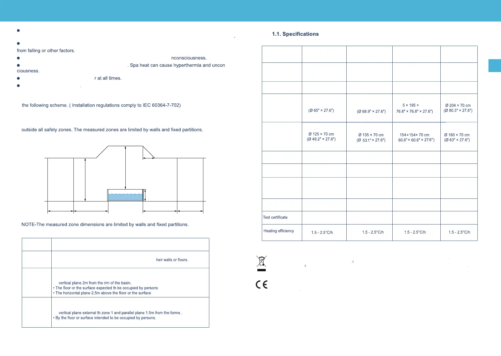 The hot tub’s electrical connections must be installed in the electrical safety zones labelled 1, 2 or