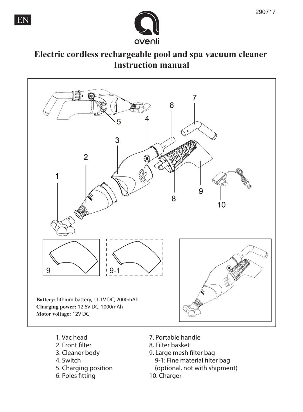 If your avenli Swimming Pool Vacuum isn't picking up debris, several factors could be at play. First, the battery might be low; try fully charging it, which should allow for about 60 minutes of operation. Also, the impeller might be jammed. Turn off the cleaner and check the gap in the middle to see if anything is stuck. You can gently rotate the impeller to loosen it. Warning! Make sure the cleaner is powered off during this check. Lastly, the filter bag might be full, so detach the filter basket and bag to clean them.
