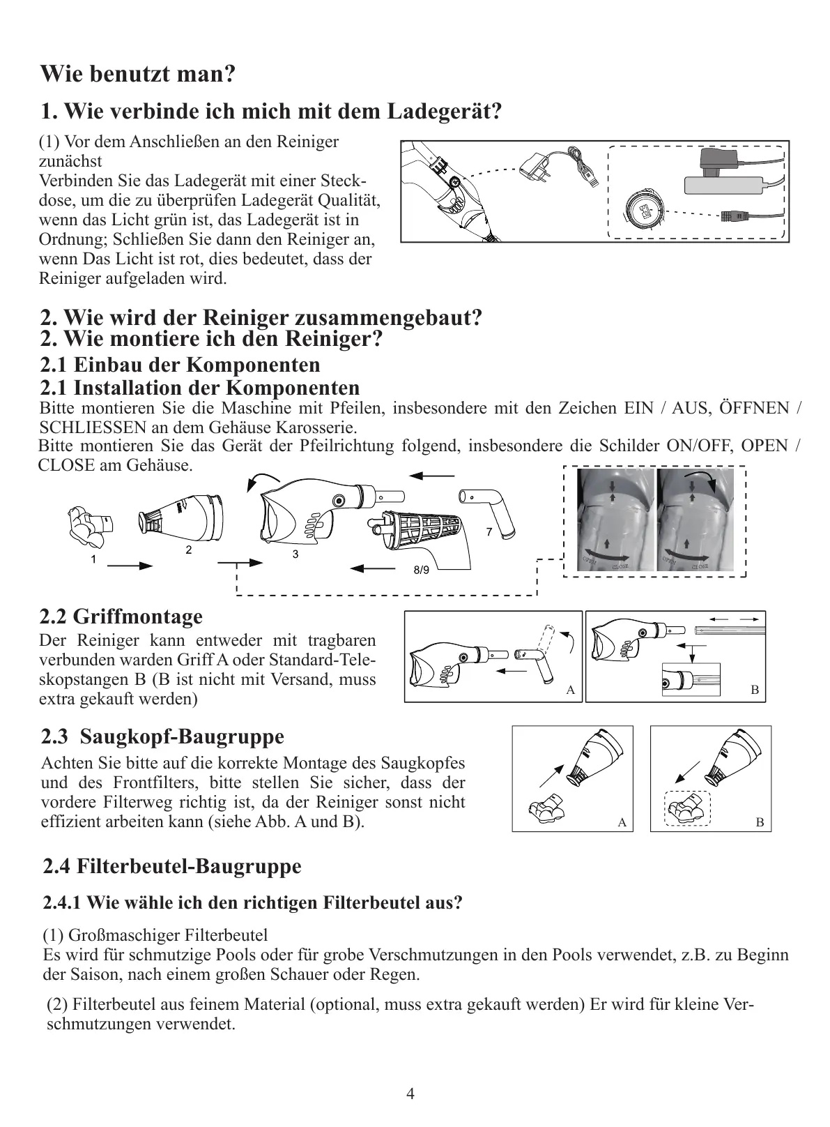 2. Wie wird der Reiniger zusammengebaut?