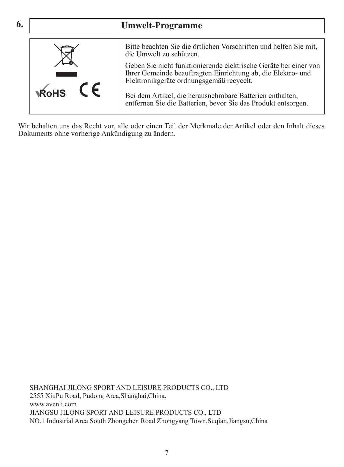 SHANGHAI JILONG SPORT AND LEISURE PRODUCTS CO., LTD