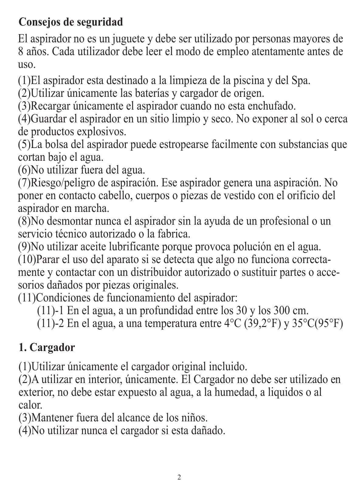 (1)El aspirador esta destinado a la limpieza de la piscina y del Spa.