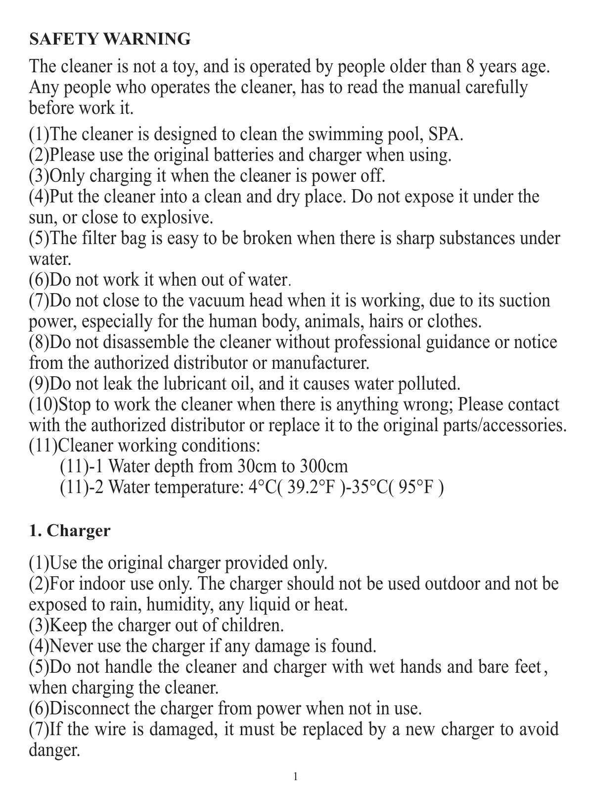 (1)The cleaner is designed to clean the swimming pool, SPA.