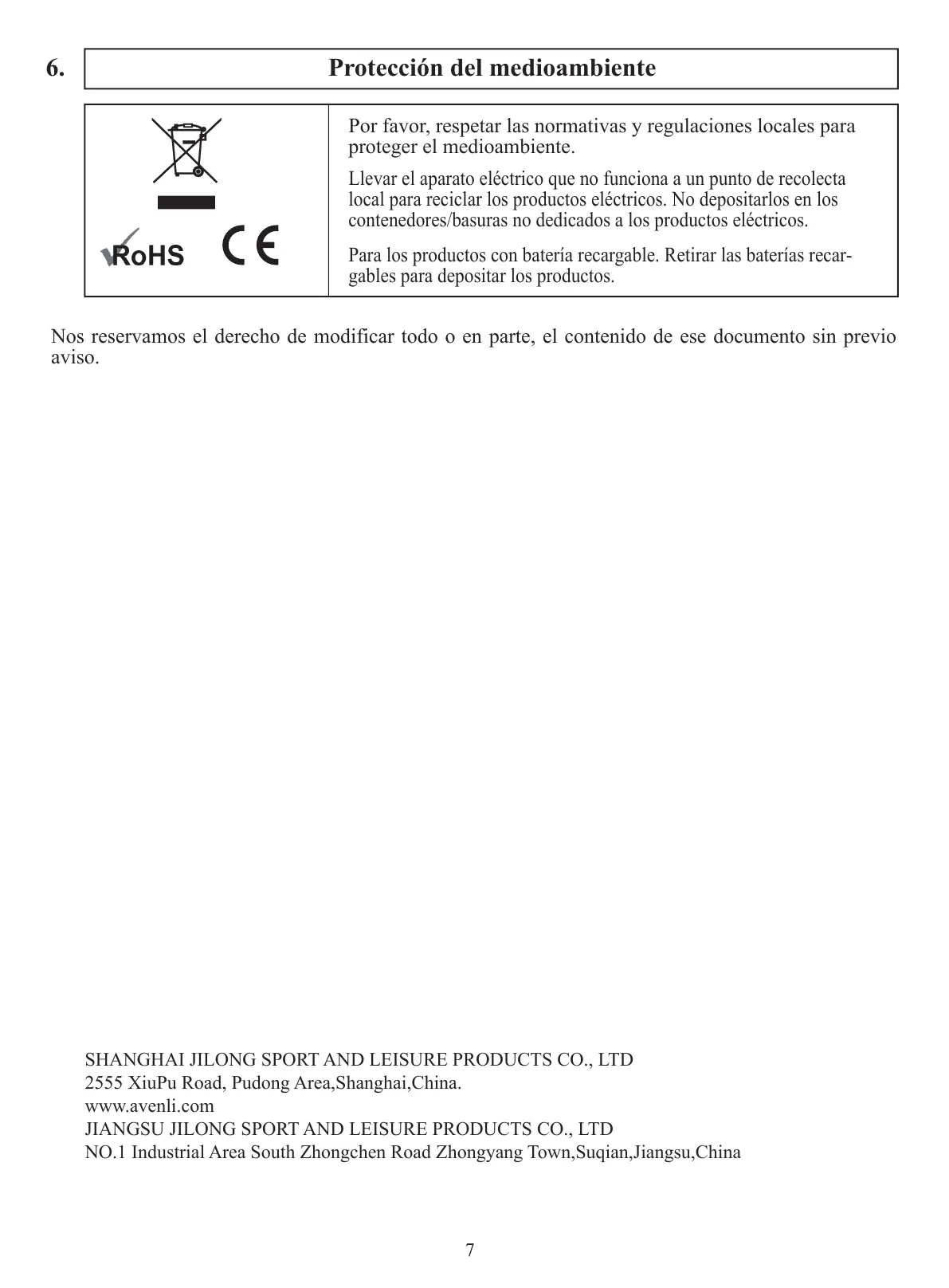 JIANGSU JILONG SPORT AND LEISURE PRODUCTS CO., LTD