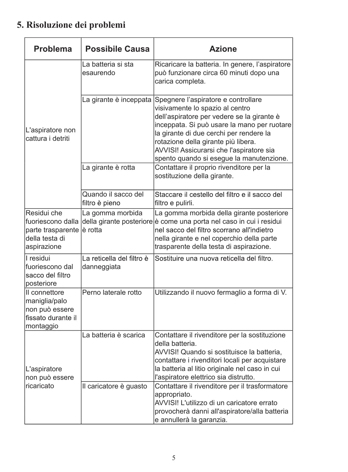 Il caricatore è guasto Contattare il rivenditore per il trasformatore
