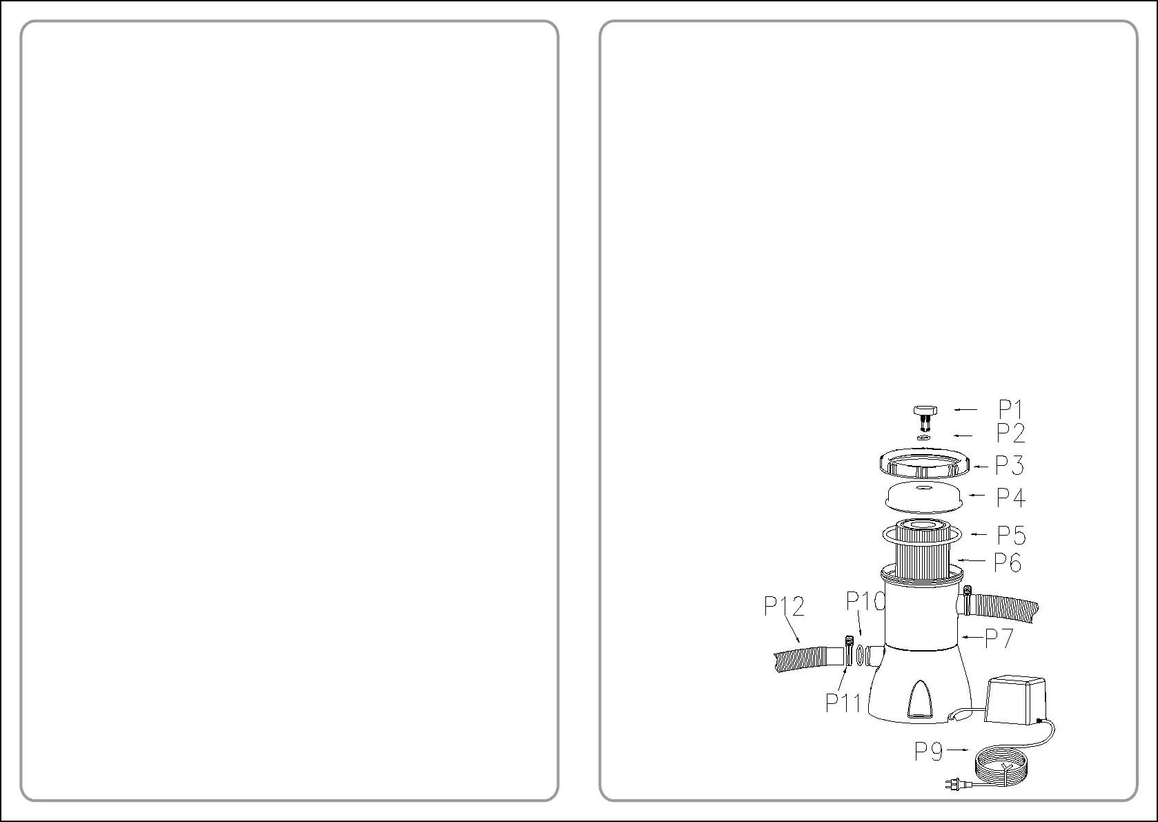 WARNUNG Die Filterpumpe muss vor dem Einschalten mit Schrauben auf